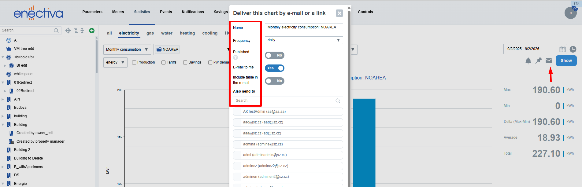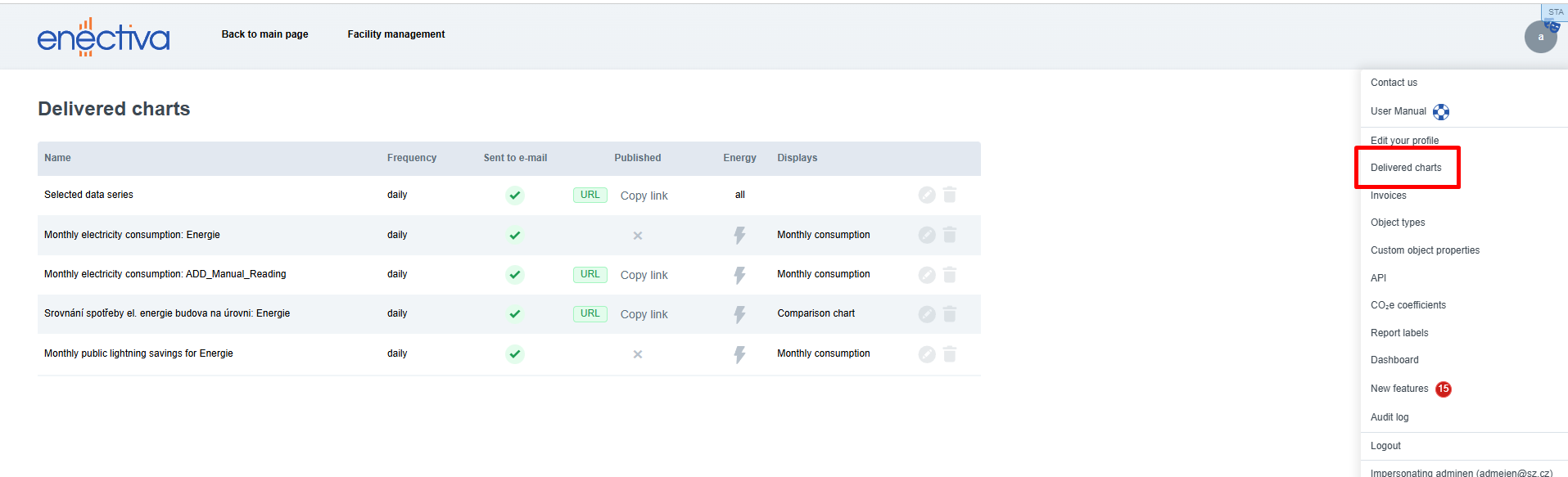 Enectiva allows automatic chart delivery via e-mail. The selected chart can also be shared via a public link – even with people without access to the application.