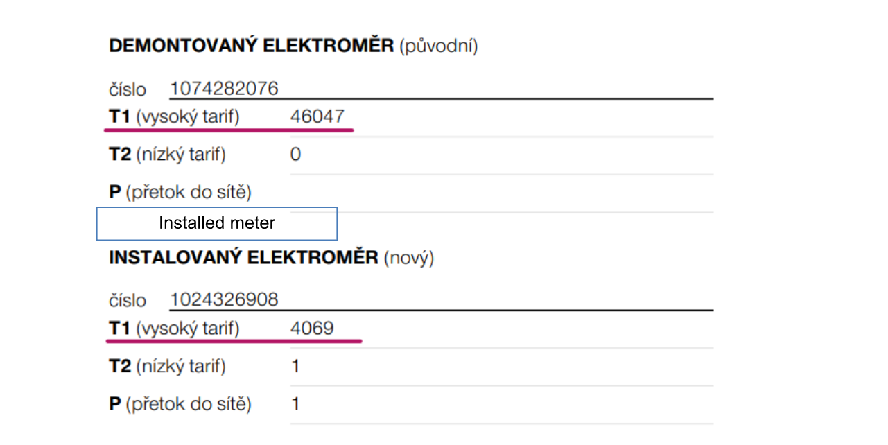 - Dle protokolu o výměně měřidla máme informace, že výměna proběhla 16.05.2024 ve 14:14:48. Poslední stav původního měřidla byl 46047 kWh a stav nového měřidla je 4069 kWh.