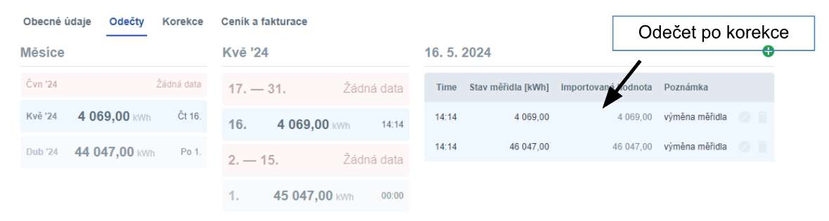 Poté přejdeme zpátky do záložky "Odečty" a zkontrolujeme naše odečty.