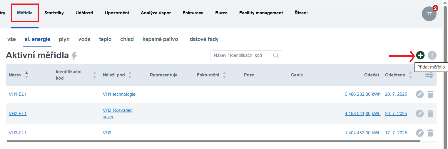 Označení měřidla jako fakturační slouží k tomu, aby hodnoty z tohoto měřidla byly použity při výpočtu nákladů v části Fakturace.