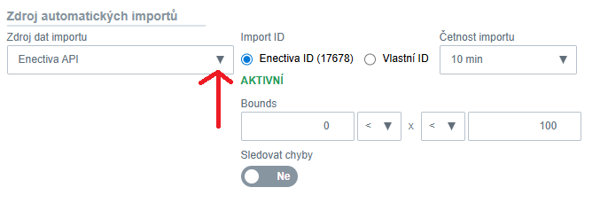 Tato sekce slouží k nastavení, zda budou data z měřidla do systému Enectiva importována automaticky z externího zdroje.