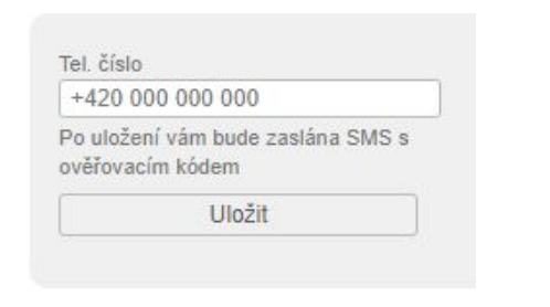 - Do prázdné kolonky zadejte telefonní číslo a vyčkejte na doručení potvrzovací SMS, která obsahuje kód.