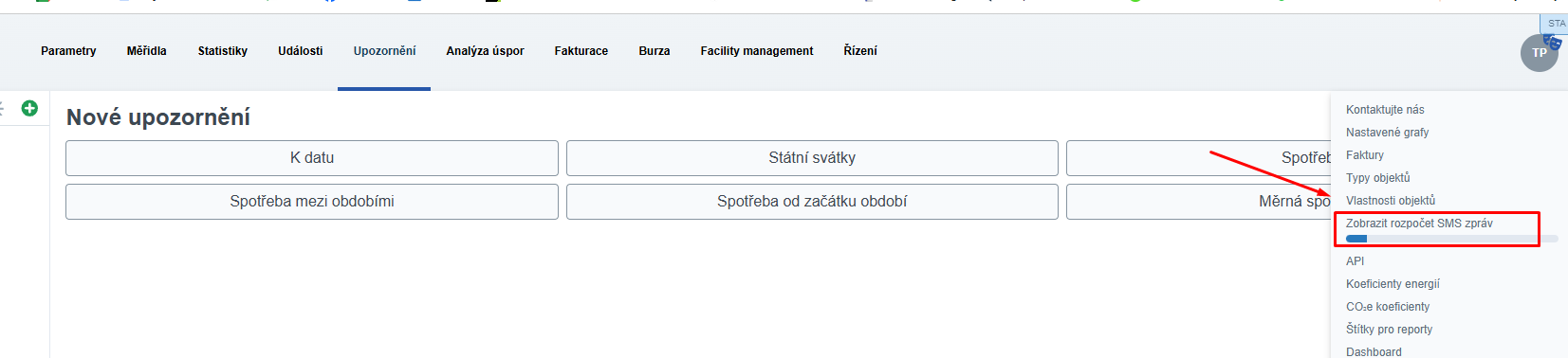 Stav svého měsíčního rozpočtu na SMS si můžete zobrazit kliknutím na “SMS rozpočet” v menu v pravém horním roku.