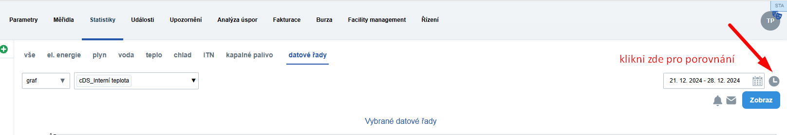 Datové řady můžete zobrazit na záložce Statistiky kliknutím na kolonku datové řady vpravo na horním panelu zobrazujícím druhy energií.