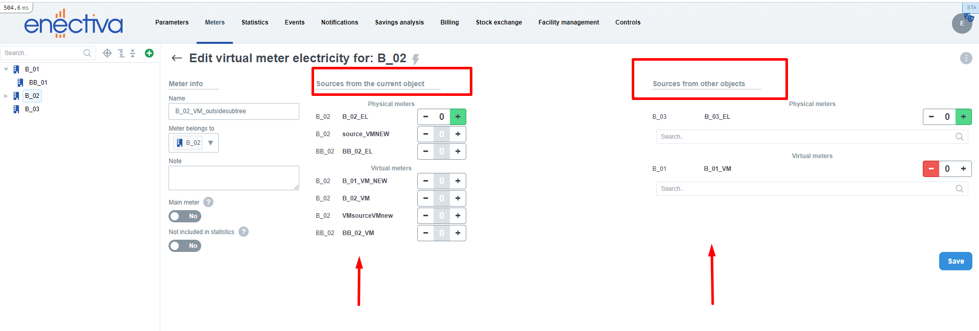 Sources can now be added from anywhere — not just from the same object or its subtree, but also from other objects. This functionality allows users to simplify the management of meters across different buildings or complexes.
