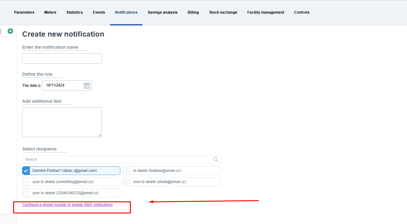 Before starting the actual configuration in the application, it’s necessary to prepare the option to use SMS notifications. SMS notifications are a paid service, where users pay for a certain "budget" of available SMS messages. For example, if you set a budget of 10 SMS messages, you’ll be able to send a maximum of 10 messages per month. Payment is made for the entire budget at once. For more details, our team will be happy to assist you.