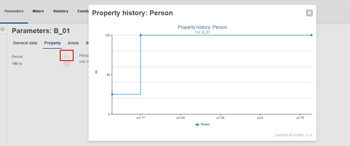 The history of property changes can be viewed by clicking the "eye" symbol.