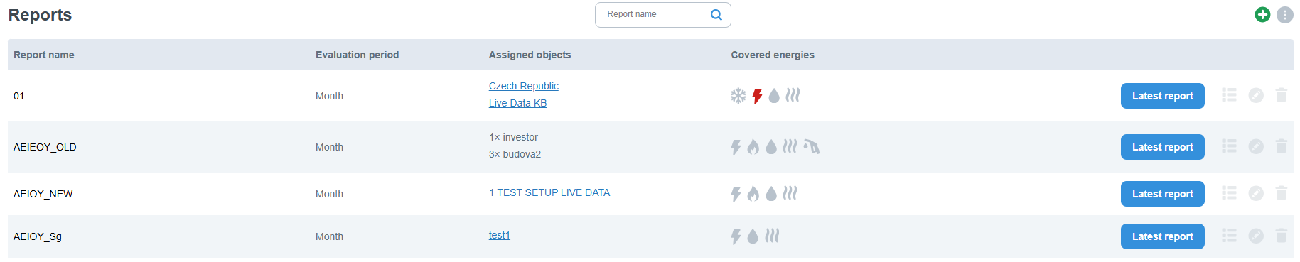 You can find them below the entity tree in the left panel. Clicking Reports opens a list of reports you can view. Full access to report configuration within the customer is available only to admin.