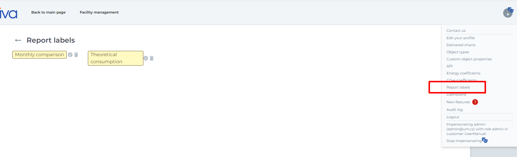 In the comments section, you can distinguish various topics using tags. The list of tags for reports can be viewed by clicking on your account in the upper right corner and then opening "Report Tags." Here, you can create, edit, or delete tags. Once you open "Report Tags," you will see all your saved tags. You must create a tag first before it can be assigned to a comment.