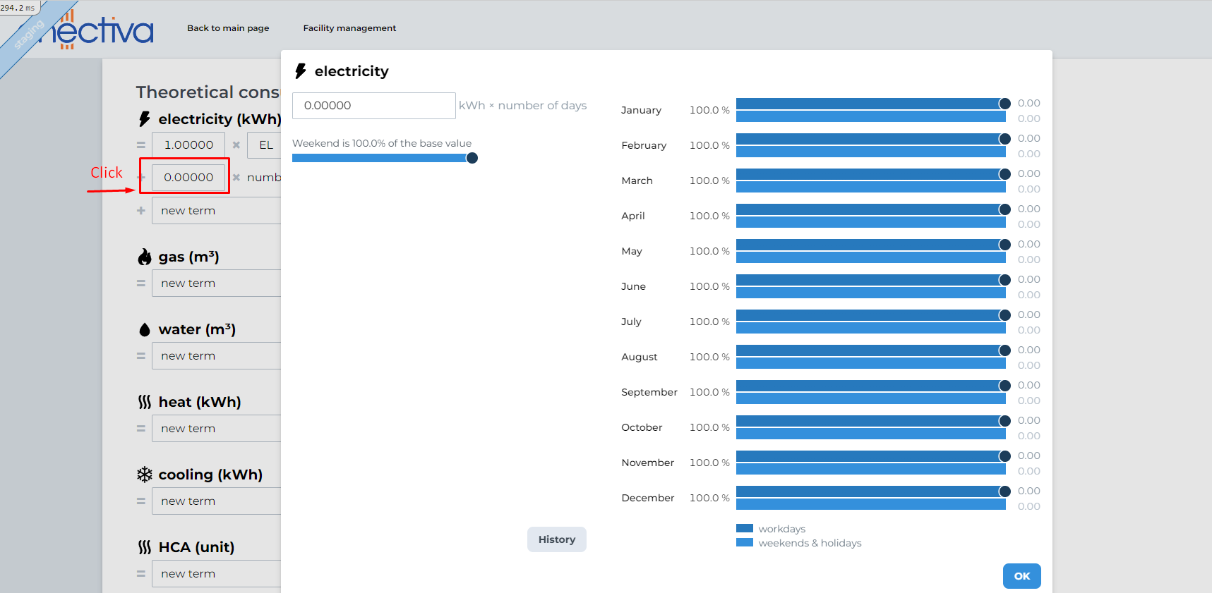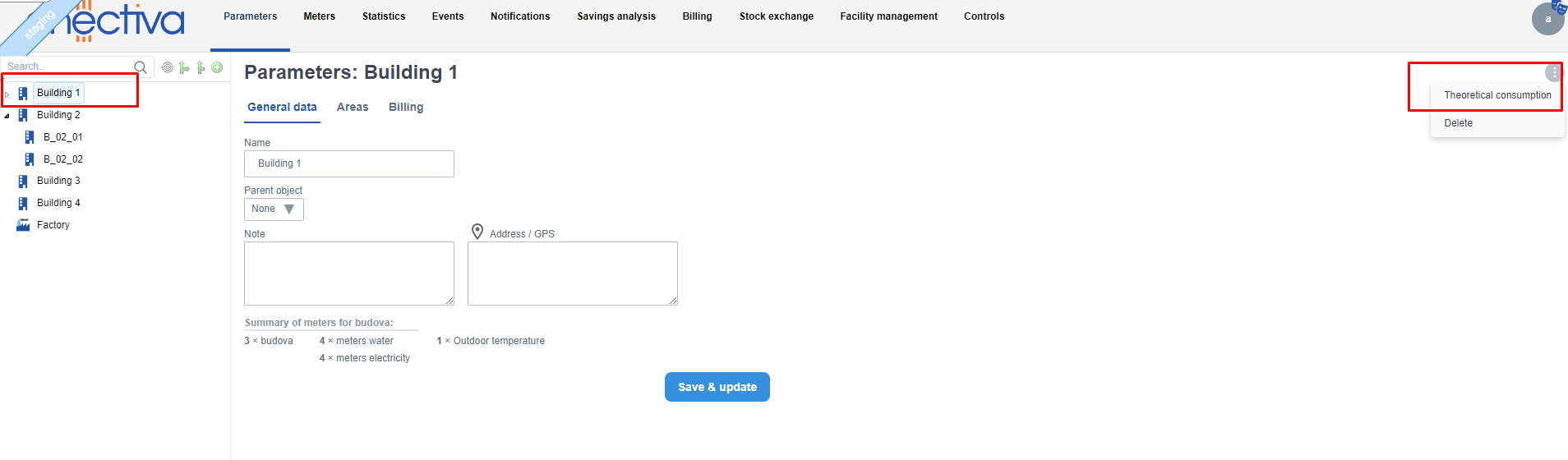 For a correct calculation of the theoretical consumption of buildings, it is necessary to enter the theoretical consumption of your buildings.